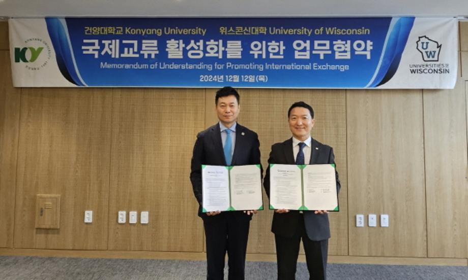 건양대학교(총장 김용하)와 위스콘신대학교가 12일 건양대 논산 창의융합캠퍼스 명곡정보관에서 글로벌 협력과 국제교류 활성화를 위한 업무협약을 체결했다.