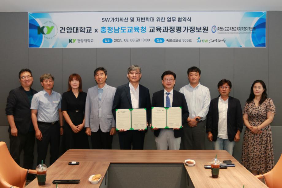 건양대학교(총장 김용하) SW중심대학사업단(단장 김용석)은 8일 충청남도교육청교육과정평가정보원(원장 오동규)과 업무 협약을 체결하며 충남 지역의 미래 AI·소프트웨어(SW) 인재 양성을 위한 협력을 본격화했다.
